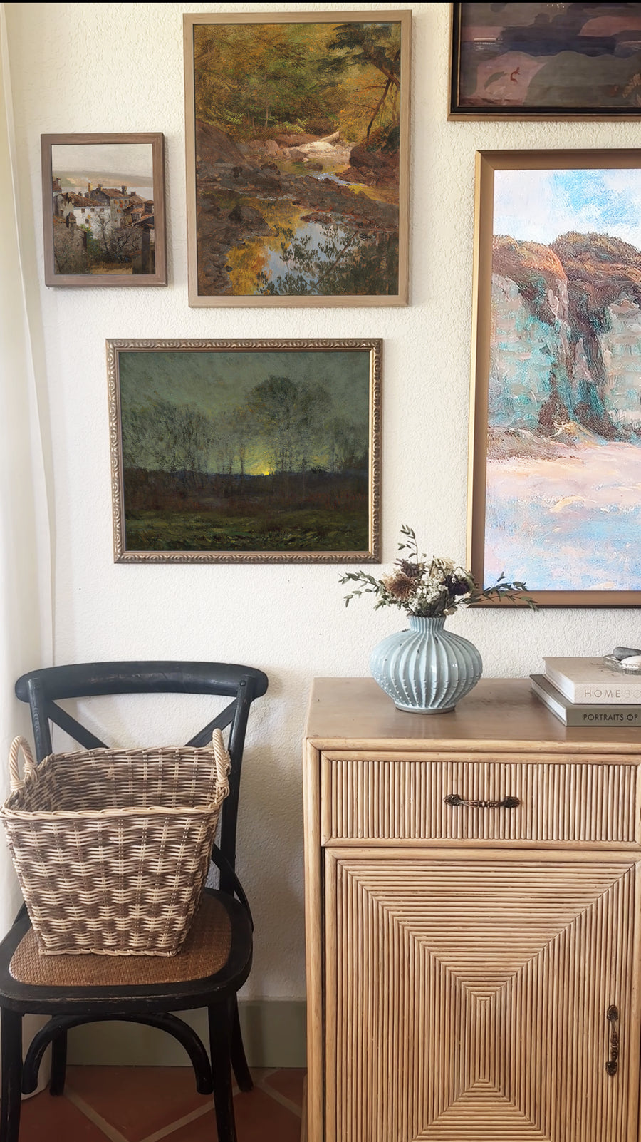 About The Artist: Adolf Kaufmann was an Austrian landscape and marine painter, born in Troppau, who began as a largely self-taught artist before refining his craft under animal painter Émile van Marcke in Paris. Deeply influenced by the Barbizon school and the French *paysage intime* style he encountered in the 1870s, Kaufmann painted atmospheric, color‑rich rural scenes—woodland ponds, meadows, riversides—often populated by a figure or two. Alternating residencies in Paris, Berlin, Düsseldorf, and Munich, he settled in Vienna in 1890, where he co‑founded an art school for women with Carl von Merode and Heinrich Lefler, exhibited extensively at the Vienna Künstlerhaus, Munich Glaspalast, and Große Berliner Kunstausstellung, and signed many Paris‑painted works under pseudonyms like “A. Guyot” in varying styles. His work earned numerous awards and was collected by European aristocrats from Napoleon III to Tsar Nicholas II; today his works can be found in institutions such as the Leopold Museum in Vienna and the Pera Museum in Istanbul.